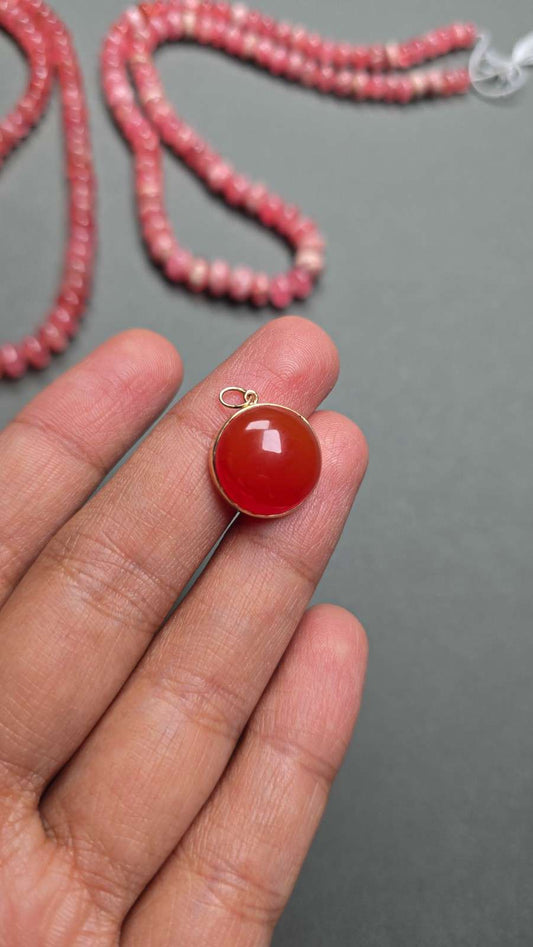 14k Solid Gold Carved Rose Quartz Flower with Pink Tourmaline