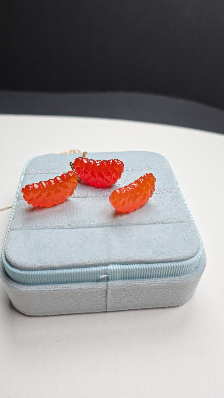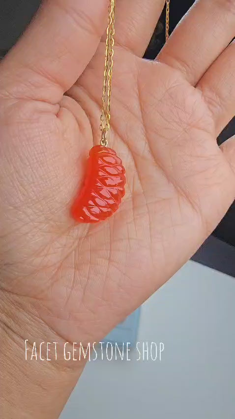 Carved Red Onyx Gemstone mandarin orange charm in 14k Solid Gold. So juicy and Carved to perfection with hands.